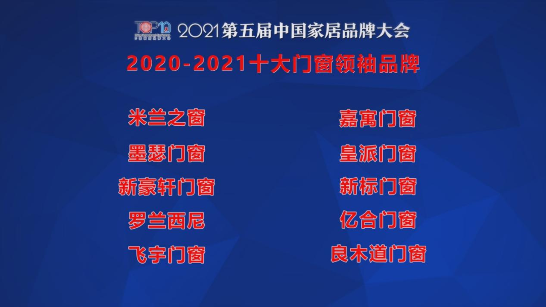 榮耀時刻 | 米蘭之窗榮登十大門窗領(lǐng)袖品牌榜首
