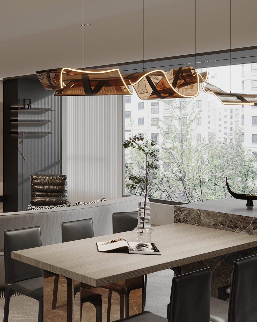 木質(zhì)的溫潤、金屬的現(xiàn)代感、石料的奢華